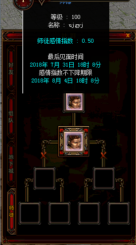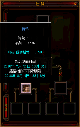 在实现师徒关系后,需要师徒之间进行规定时间的互动,以保持互相之间的感情指数